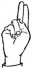 На ћирилици написано ОЛИВЕРА ГРАБОВЧИЋ састоји се из 16 слова [?]. Исписано ћириличном једноручном азбуком за глувонеме: